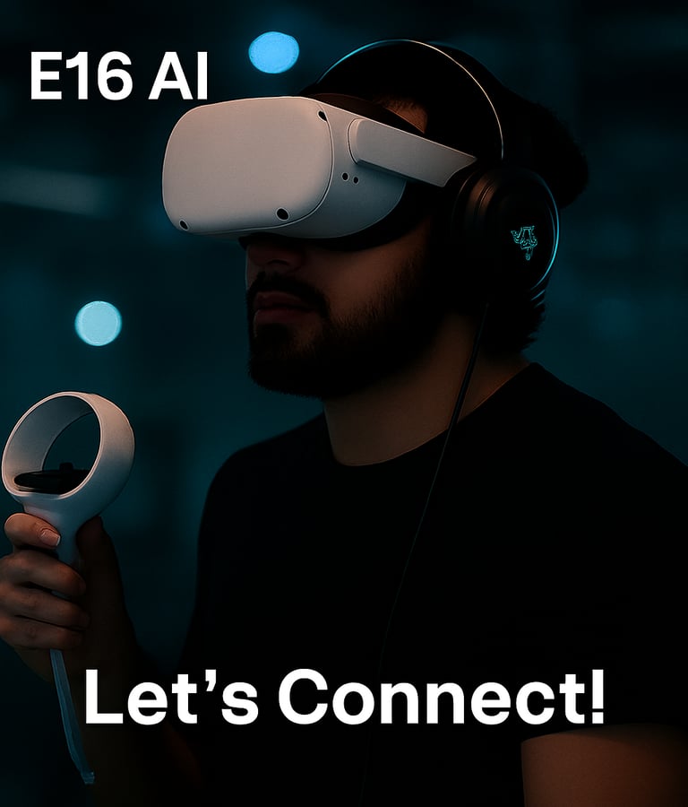 At E16 AI, we don’t just implement technology — we build it. Our strength lies in designing and delivering immersive and intelligent systems that redefine learning, training, and operational efficiency. Backed by a strong culture of excellence, innovation, and client-centricity, we are your trusted partner in realizing the full potential of XR, AI, and ML.